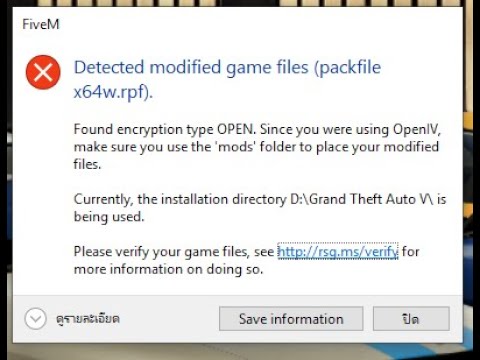 FiveM วิธีแก้ Detected modified game files (x64w และ x64v)